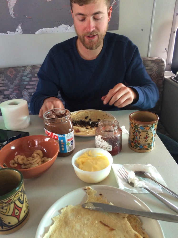 The campsites in Morocco have some wonderful amenities including pools, mini golf, darts, and cooking lessons. We learned how to make a traditional Moroccan dish called tajine and have made it a couple times on our own since we have arrived in the beach town of Tamaraght. Lynne, who we met in Utrecht while buying our van, graciously hosted us for over a week in her apartment she was renting out for the 6 weeks. She also bought a van from Donna and parked in Donna’s lot for a couple days. We kept in contact with her via email and she invited us to stay with her. She was an incredibly fun and kind host. Together we experimented with the tajine cooking, drinking Moroccan wine, and watching some epic movies.
